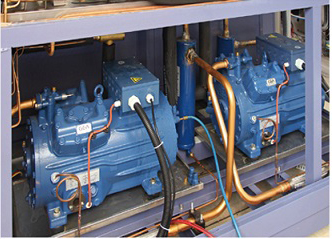 以加熱•冷卻輸出控制變頻器與調(diào)節(jié)電子膨脹閥,控制各區(qū)間的冷媒量 來調(diào)節(jié)被浪費的加熱量及控制冷凍機來實現(xiàn)節(jié)能。(變頻控制為選項) |